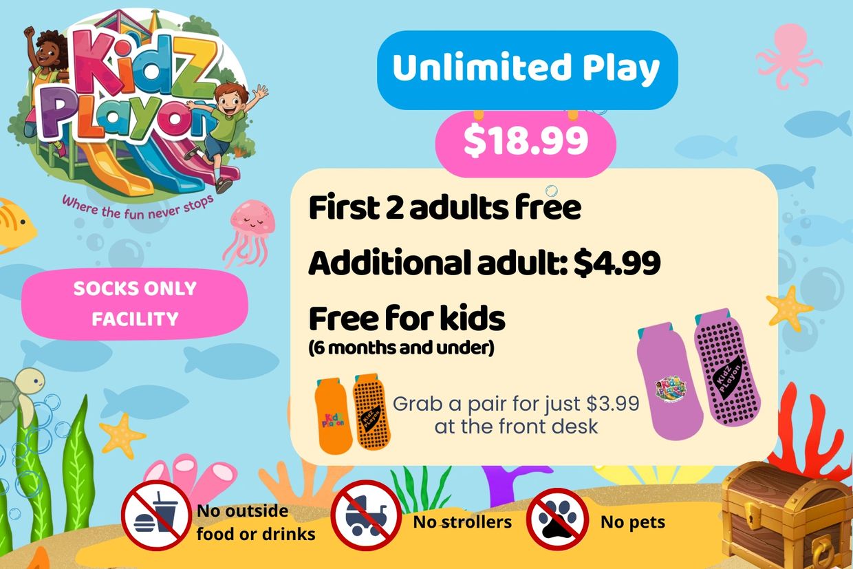 Kidz Playon is a local family owned indoor playground in Frisco, TX. We offer families a year-round and affordable day of fun with an interactive space for both kids and adults to enjoy. Kidz Playon is more than just a playground for kids. It’s a space where we host fun events, and a comfortable and inviting oasis for everyone to grow and make great memories. Come let your kids burn off some energy while you enjoy browse on our high speed internet or join in on the fun!
